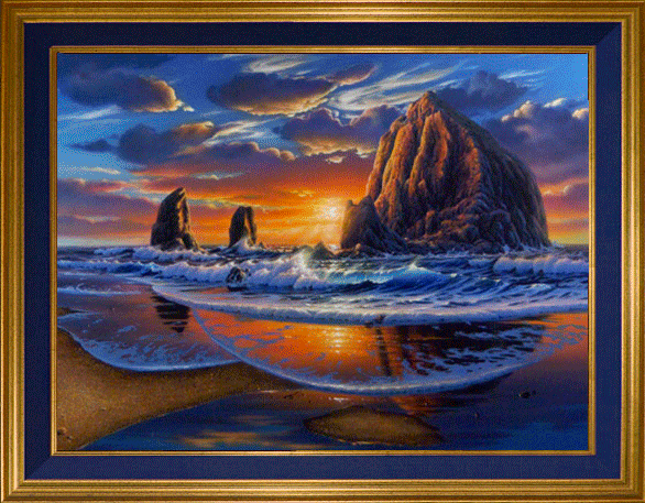 The sun sets over Haystack Rock soon turning into a warm summer night.