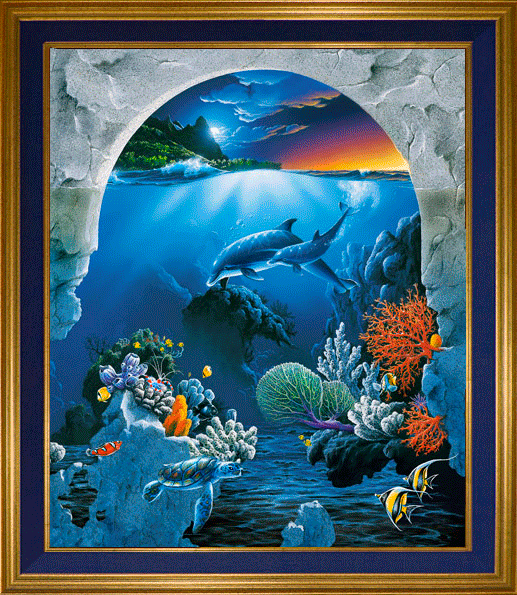 Off Bali Hai, a dolphin and it's baby play along the coral reef.