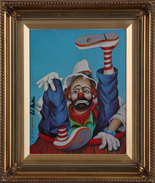 Limited reproduction on canvas. Hand signed by Red Skelton and individually numbered 62/5000. The artwork is accompanied by a certificate of authenticity signed by the artist.