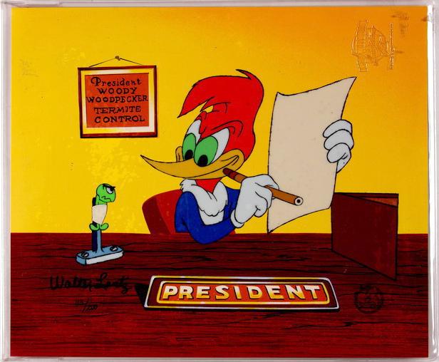 A limited edition animation cel. Hand signed by Walter Lantz and individually numbered.